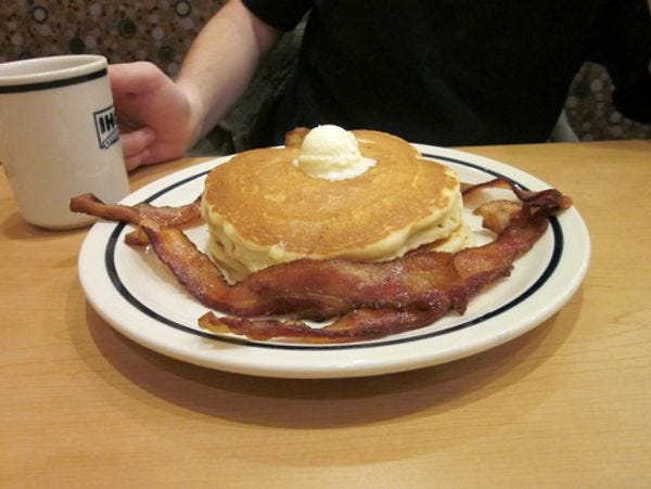 IHOP will be giving away a free short stack of pancakes today between 10 am and 10 pm in celebration of National Pancake Day, Real America's Other Christmas and a handy promotional event for the Flapjack Union, and, we guess, cancer, too. The hope is that you will eat this stack of flour, sugar, MSG, nuclear eggs, and non-local pig product, and that this near-death experience will move you to donate some dollars to these up-and-coming diseases.