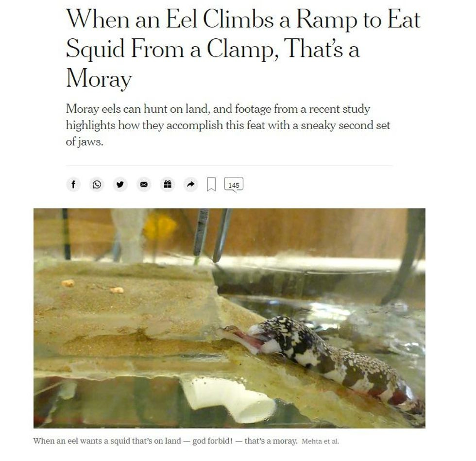 Yes, moray eels have a second set of jaws. And they like to eat you with their little mouth too. ( New York Times )