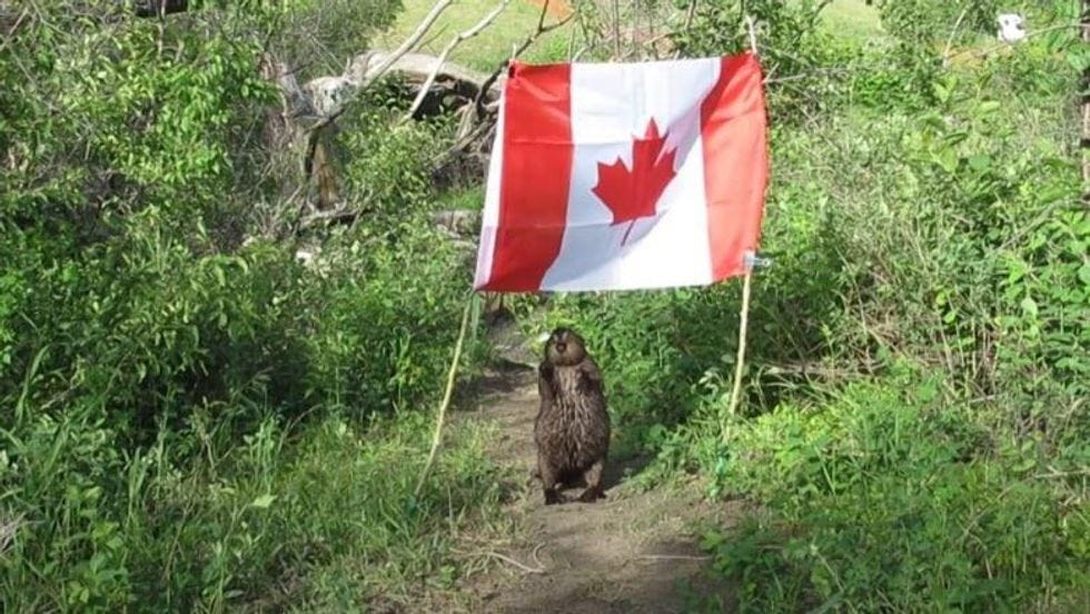 A beaver in Saskatoon, Saskatchewan, posed for a very cute photo after a guy set up a Canadian flag over a beaver trail and waited to see if he could get pics of the two Canadian icons together. Look how cute she is! And no, not photoshopped.
