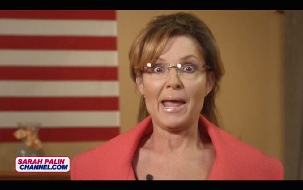 In its final week as agriftinggoing concern, the Sarah Palin Channel's videos exuded all the enthusiasm of someone hiking in wet socks. There was a post about how veterans don't get no respect; a video calling upon someone, anyone to step up and lead , dammit; another video about a proposed Convention of States that, once again , proves Sarah doesn't really get what the word "amendment" means; and a fourth video that was so boring we forgot everything about it.