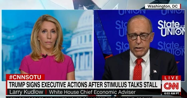 Appearing on both CNN's "State Of The Union" and ABC's "This Week," Kudlow brought all the know-how of a man who had less that 24 hours to figure out explain this. Like when he was asked by Dana Bash on CNN about how much money Americans would receive.
