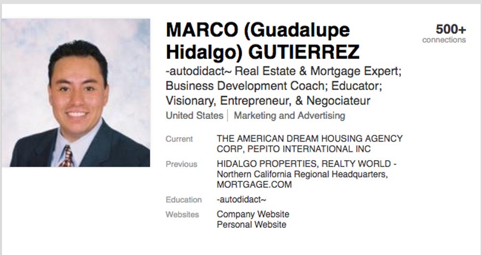 Anyway, aside from being wrong about what the American people want in terms of food -- which I think we can all agree is literally never having to go more than a block in order to procure a delicious taco -- Marco Gutierrez is also a real estate scammer who scams poor people hoping to save their houses, and then steals their money and uses it to pay his cable and phone bills! NICE!