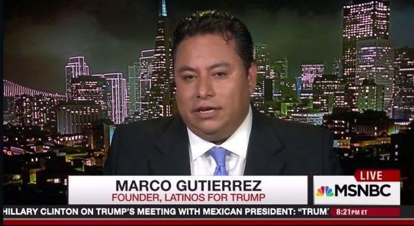 Anyway, with a background like this, it is hardly surprising that Gutierrez is one of the very, very few Latino people willing to come out in favor of Donald Trump. It's not like he's got much of a rep to protect anyway.