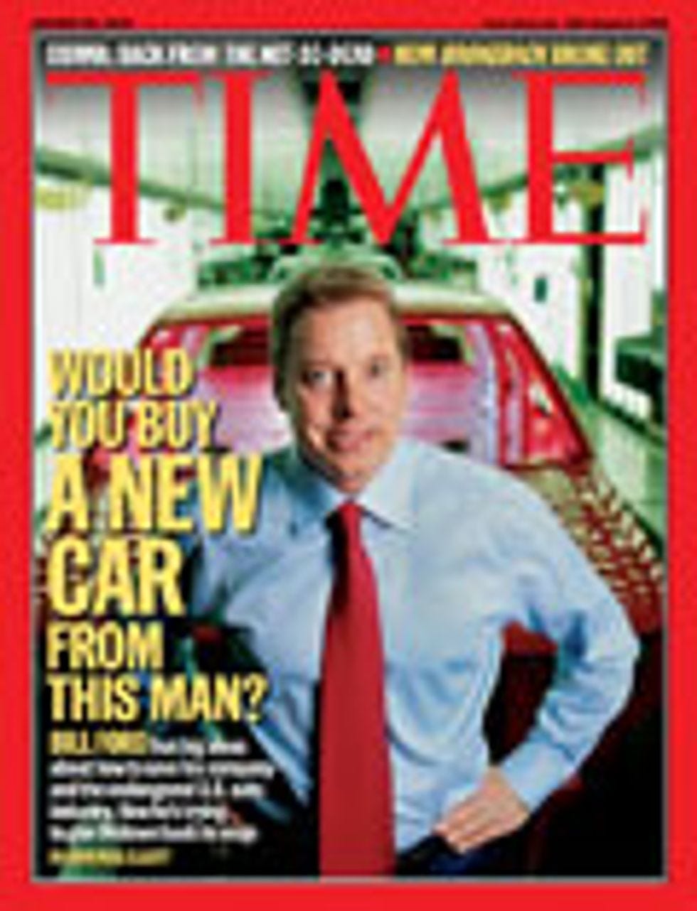 This morning, Ford announced the end of 30,000 jobs. This week, the guy in charge of that decision is grinning at you from newstands nationwide: he'sTime's cover model. The headline? "CAN THIS MAN SAVE THE AUTO INDUSTRY?"