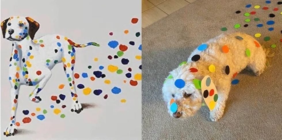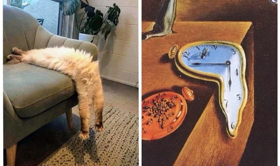 In any case, it's all over social media. The rules are pretty simple: "recreate a work of art with objects (and people)" found in your own locked-down home. We suspect some creators may have ventured forth for special items, but as of yet, there don't seem to be any heavy handed enforcement actions.. And now it's all over Twitter, the Instagrams , and the good part of Reddit, which as we keep reminding you, is most of it. There's just so much good creative stuff!
