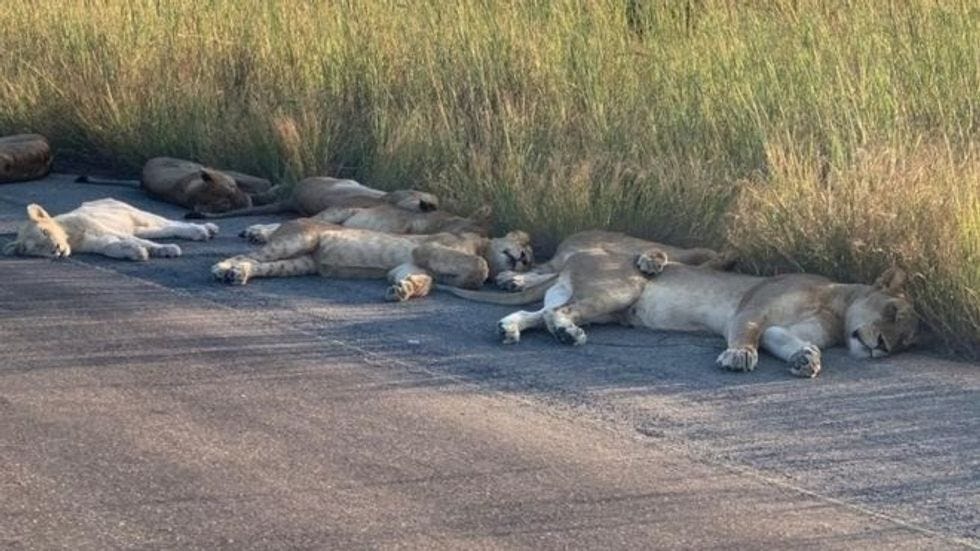The park's media officer, Isaac Phaala, explained that while lions might usually find the asphalt less comfy than the grass, it had rained shortly before Sowry encountered them: "The tar was drier than the grass at the time — big cats and water don't mix."