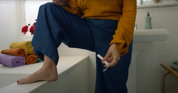 Then, the teen’s older sister walks into the bathroom, gives her a pair of Thinx period panties, and tells her younger sister, “Mom won’t have to show you how to use them. You’re welcome.”