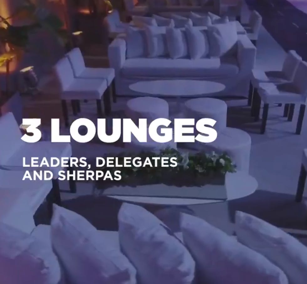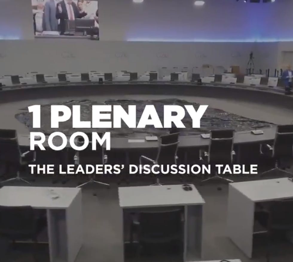 1: Right in the middle of this big circle of chairs with all the other world leaders present.