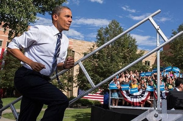 Anyway, look at that sexxxy President Obama up there, running and bravely going UP stairs like it is nothing in the world! What is he, Superman?
