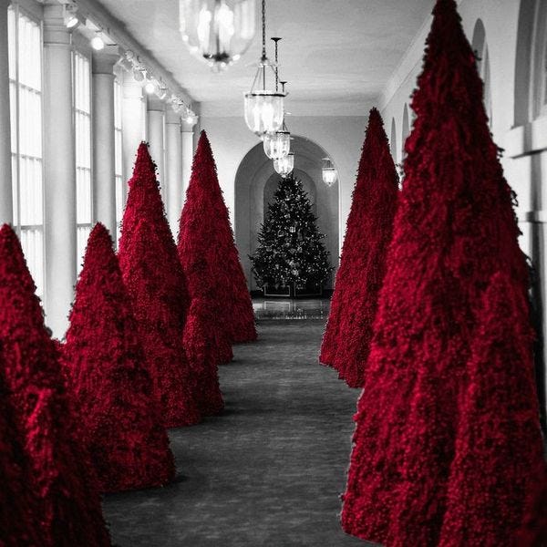 Melania went to her Inner Rage Place, broke three limbs off the Christmas tree, and threw a wicker angel into the fire as Junior gathered the bags and Jared called for the helicopter.