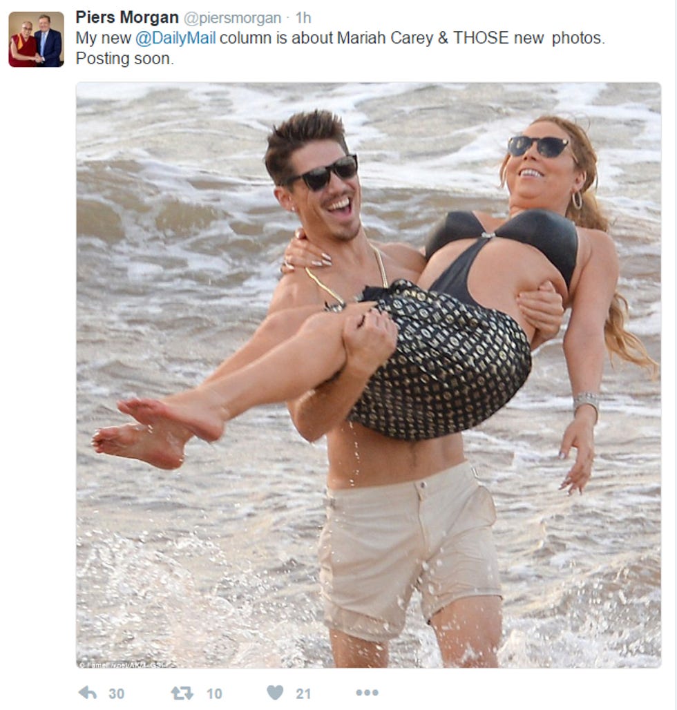 Now look, lest you think this is really limiting his worldview, Trump gets all the latest Mariah Carey news from Piers Morgan: