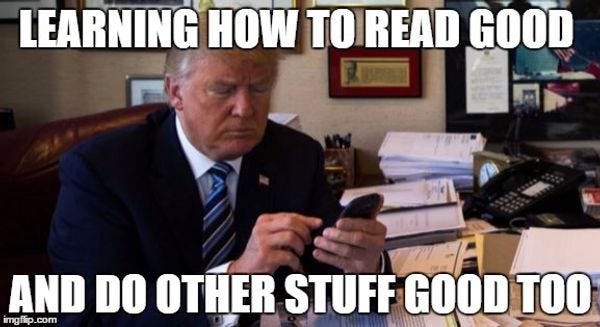 And we're not saying these are the only sources Trump reads, because we don't want to inadvertently accuse the president-elect of knowing how to read. It may be that every morning, one of the neck-beards on his staff brings him a veritable ALL OF THEM KATIE-sized stack of periodicals and newspapers that he curiously sounds out until he gets distracted by a squirrel. Maybe. Possibly.
