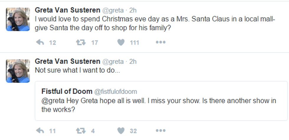BREAKING NEWS, Donald Trump's friend Greta is having a crisis! Does she want to do another television program, or does she want to sneak into the mall and pretend to be Scientology Claus, so the real Santa Claus can have a day off to buy Crimmus presents? HMMMMM. Trump should call her and offer her secretary of State probably.