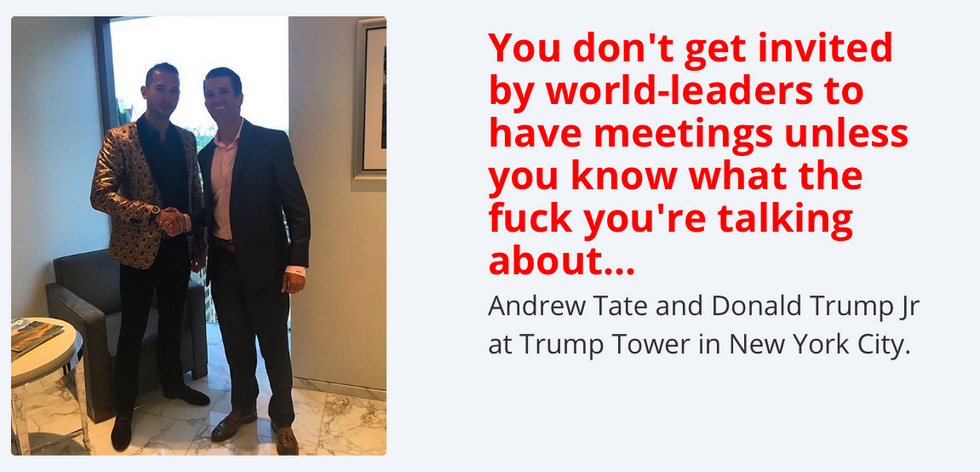 And you know they know what they are talking about, because here is a picture of Tate with the biggest douchebag of all, Donald Trump, Jr.!