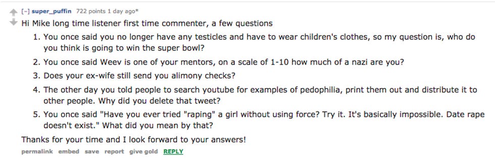 This Friday, Weird Mike Cernovich decided to do a Reddit AMA. It did not go well .