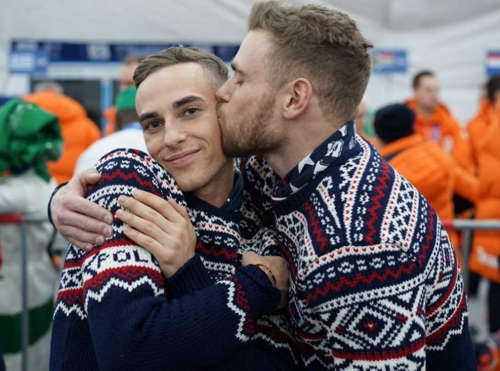And here is a picture of Gus Kenworthy planting a big one on Adam Rippon: