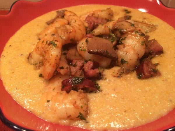 This quintessential Southern dish is now popular, in myriad variations, all across the USA, but originally was made only in an area I know and love: the Lowcountry of South Carolina. It traces its roots back to the Muskogee Tribe and Gullah Geechee slaves before finding its way to white breakfast tables and, much later, Fine Dining establishments throughout the South and, eventually, the entire country. My version would be perfectly at home in any restaurant on Charleston's East Bay Street, but I've combined the best of several to make something different and, IMNHO, better than any of them. Thank goodness modern refrigeration means we can enjoy this year round, instead of just June through October! Oh! And for those who like thumbing their noses at Jewish Tradition, because, as Christians, they are no longer subject to Kosher dietary laws, it does that, too, while not being boring ham! Today, Pink is going to tell you how you should make