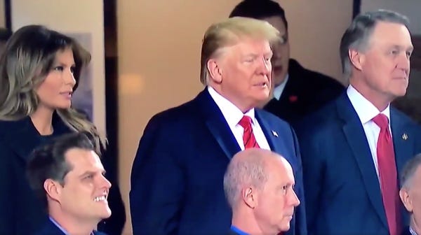 If you look closely (or not) at the video above, you can clearly see Matt Gaetz, who is likely being rewarded for being a good boy and leading a group of dumpy Freedom Caucus bros into a SCIF hearing that, legally, he was not allowed to be in last week.
