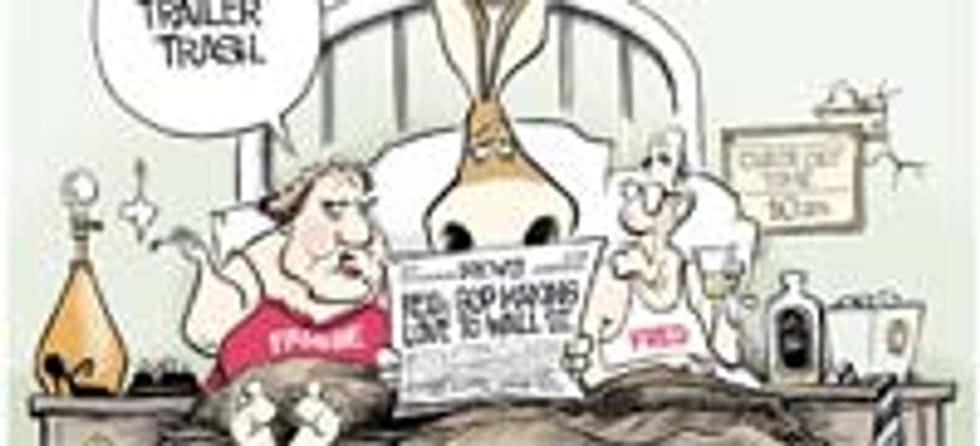 It's probably almost but not quite as upsetting to wake up in your dingy, lower-middle-class apartment to find that you and your flabby, slovenly wife/aged, decrepit husband (choose as needed for the role in which you as a rule visualize yourself) have apparently just had a three-way with a donkey. I mean, yes, all of us in long-term relationships, even those whom the coastal media elites might dismiss because they wear the wrong clothes and watch the wrong TV shows, need to do what they must to keep their relationship fresh, but donkey-fucking? (Or, in the argot of liberal extremist and elderly Mormon Harry Reid, donkey-making-love-to?) This is a sad place to be at in your life, and I'd imagine that you'd mostly sit around reading the paper together in awkward silence until the donkey finally decides to get up and leave.