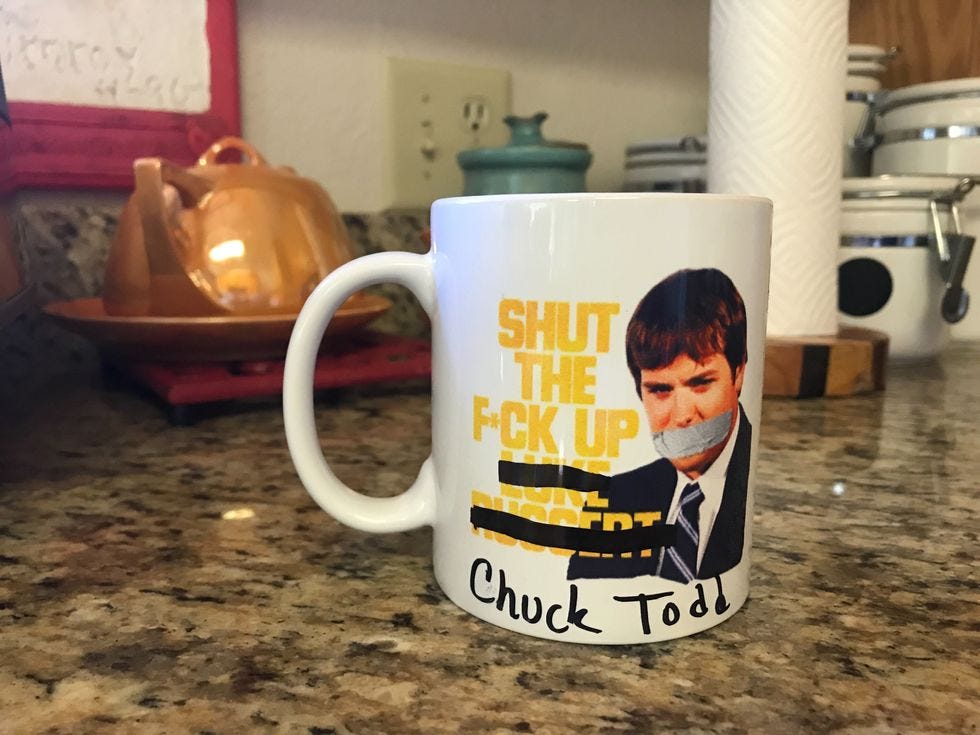 What's this? A HANDCRAFTED Shut the Fuck Up Chuck Todd coffee mug, by which I mean we literally just sharpied out Luke Russert's name and wrote Chuck Todd's in, by hand? FUCK YEAH.