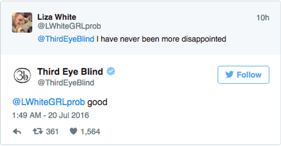 Though some of us may never be able to fully forgive Third Eye Blind for the curse they wrought upon the year 1997, particularly if we worked at a mall around that time, the band did a mitzvah last night while playing a charity event at the Rock and Roll Hall of Fame in Cleveland, and trolled the hell out of the Republicans there for the RNC who had come to see them.