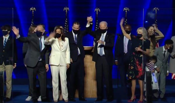 BIDEN: And to those who voted for President Trump, I understand your disappointment tonight. I've lost a couple of elections myself. But now, let's give each other a chance. It's time to put away the harsh rhetoric.To lower the temperature. To see each other again. To listen to each other again.To make progress, we must stop treating our opponents as our enemy. We are not enemies. We are Americans.The Bible tells us that to everything there is a season — a time to build, a time to reap, a time to sow. And a time to heal. This is the time to heal in America.