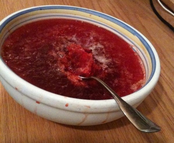 Pour out the sugar-free raspberry Jello into a bowl. Make sure the bowl is big enough to hold at least two or so cups of liquid. This last point is crucial.
