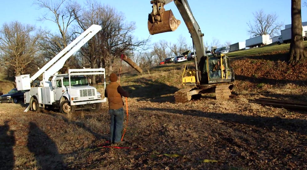 Remember how last week Jana was going to build a playhouse for the kids? But then the blotchy boys of Duggar land got their mitts on the idea and now they're building something nonsensically big that actually involves earth-moving equipment and one brief shining moment of drama where you hope that one of the logs will take out a Duggar.