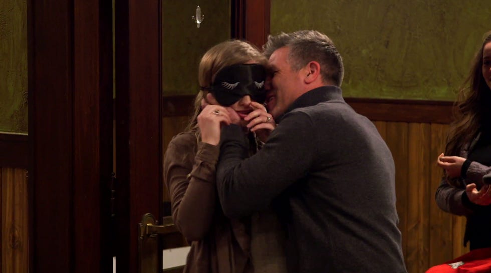 They make this poor woman wander in blindfolded, and then her dad basically crawls on top of her.