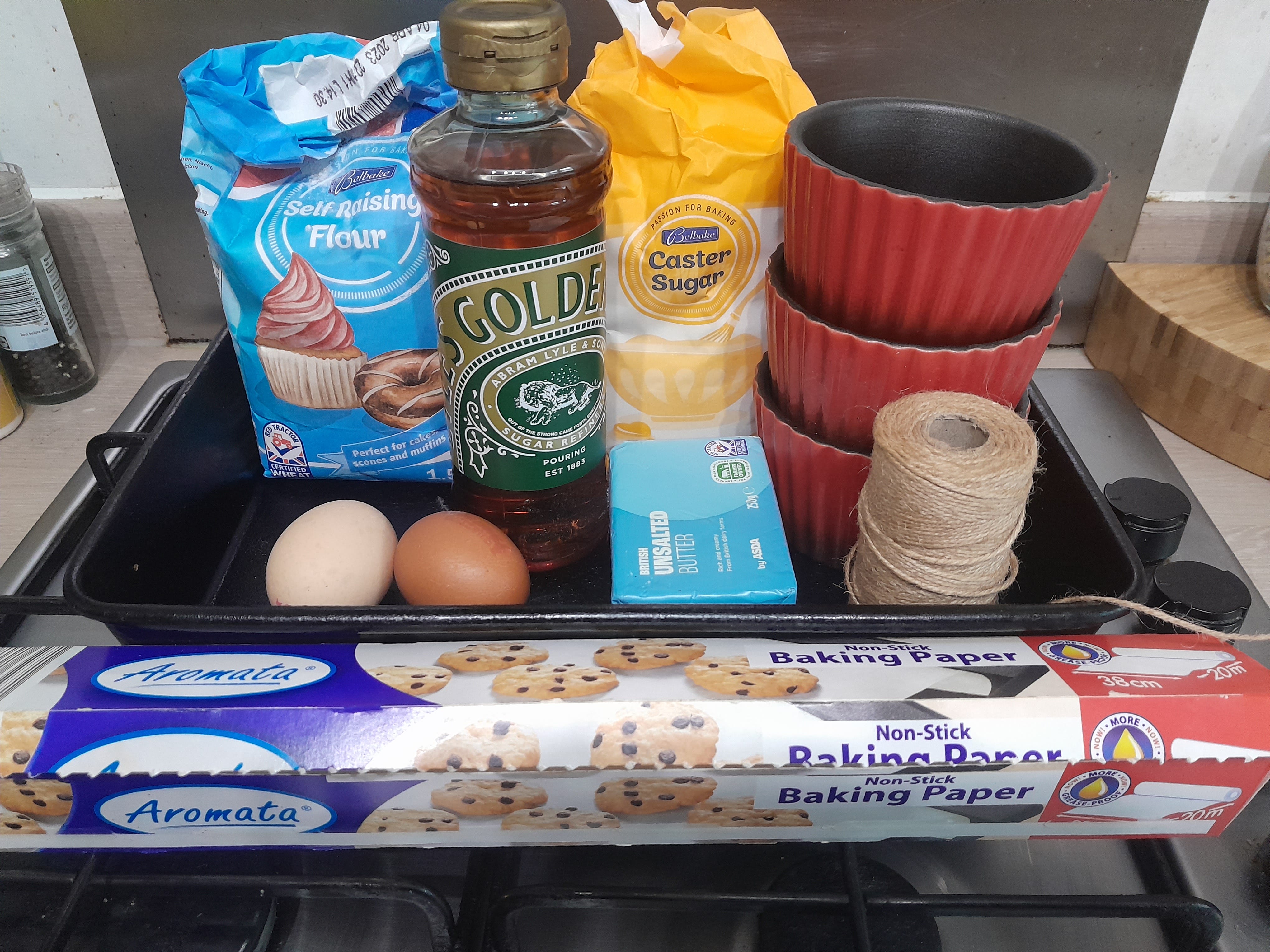 6 tablespoons of golden syrup, one each in the bottom of the ramekins, the remainder for drizzling over the top before serving