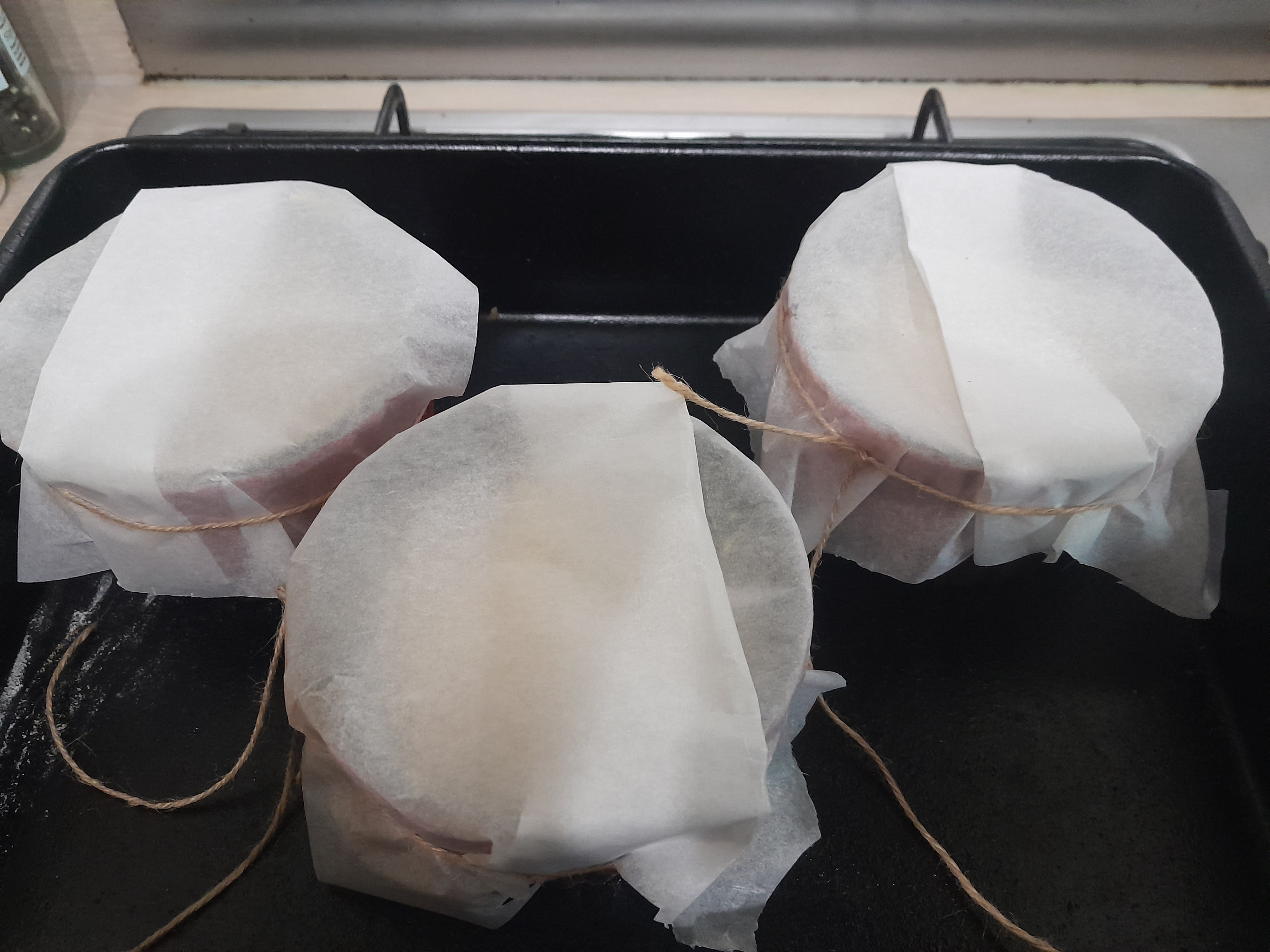 Cover your ramekins with the paper or foil; if using paper you’ll need to tie this securely using string.