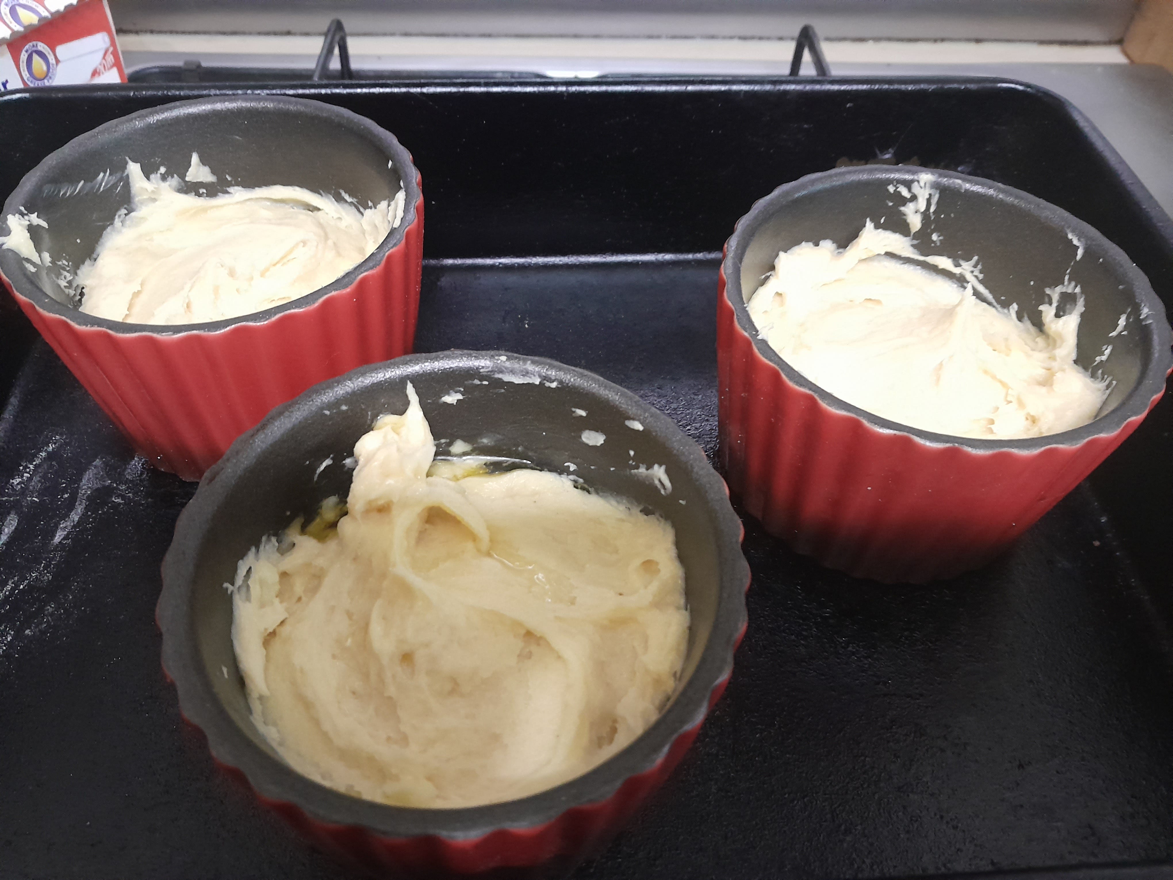 Spoon your pudding mix into your ramekins on top of the golden syrup.