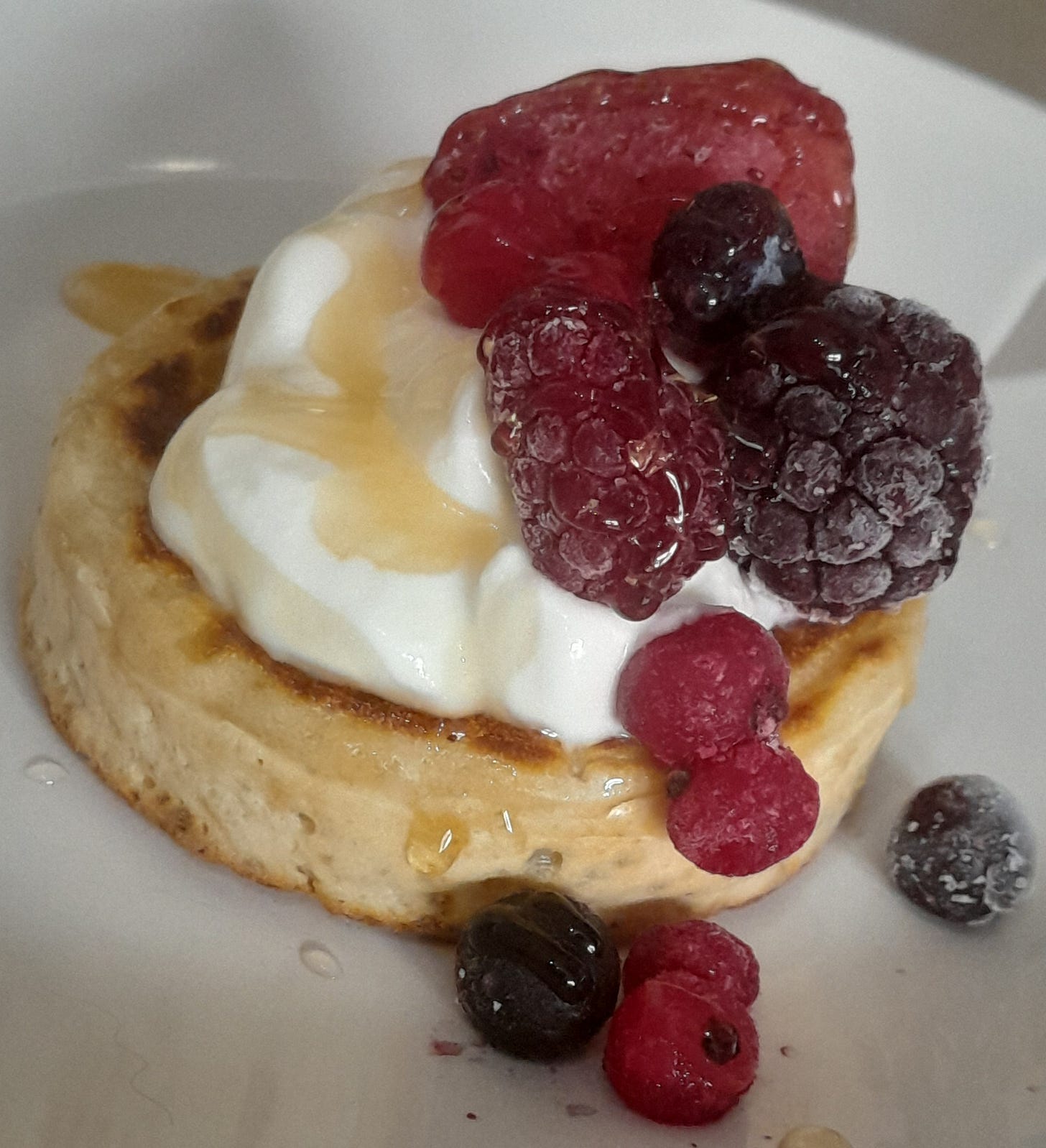 Serve your crumpets with plenty of good quality butter, and jam, golden syrup, or whatever toppings you’re craving. I find they make a lovely, healthy breakfast served with a handful of berries, a spoonful of low-fat crème fraiche, and a drizzle of honey.