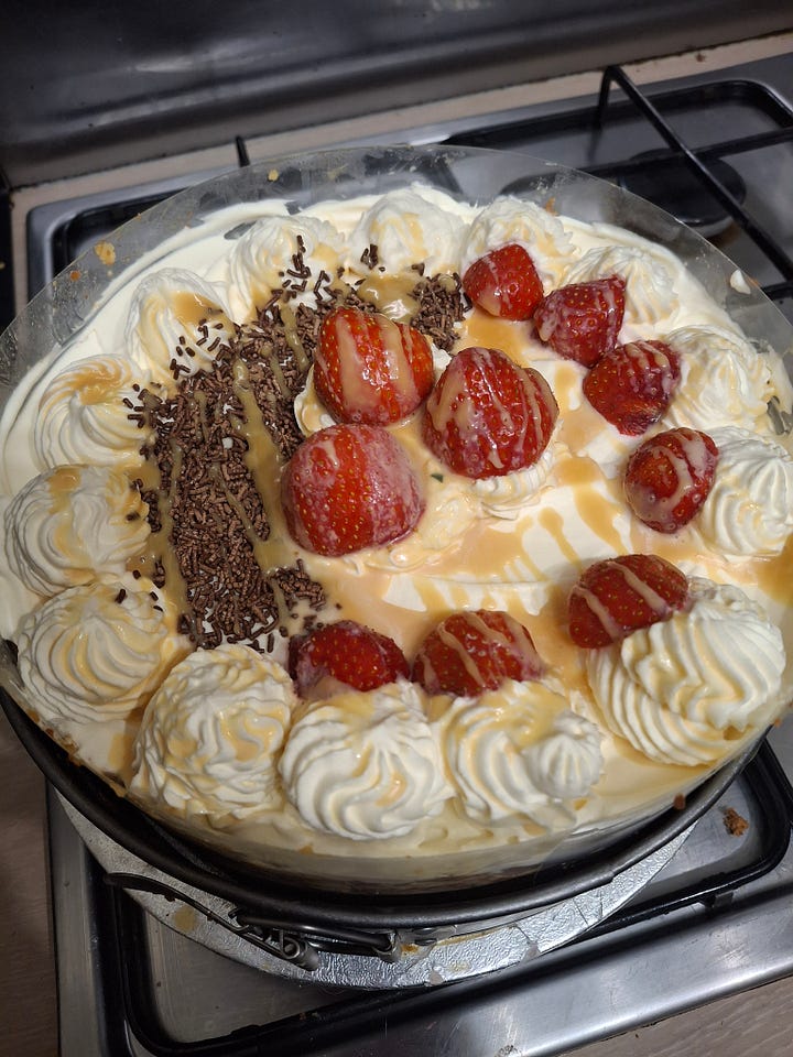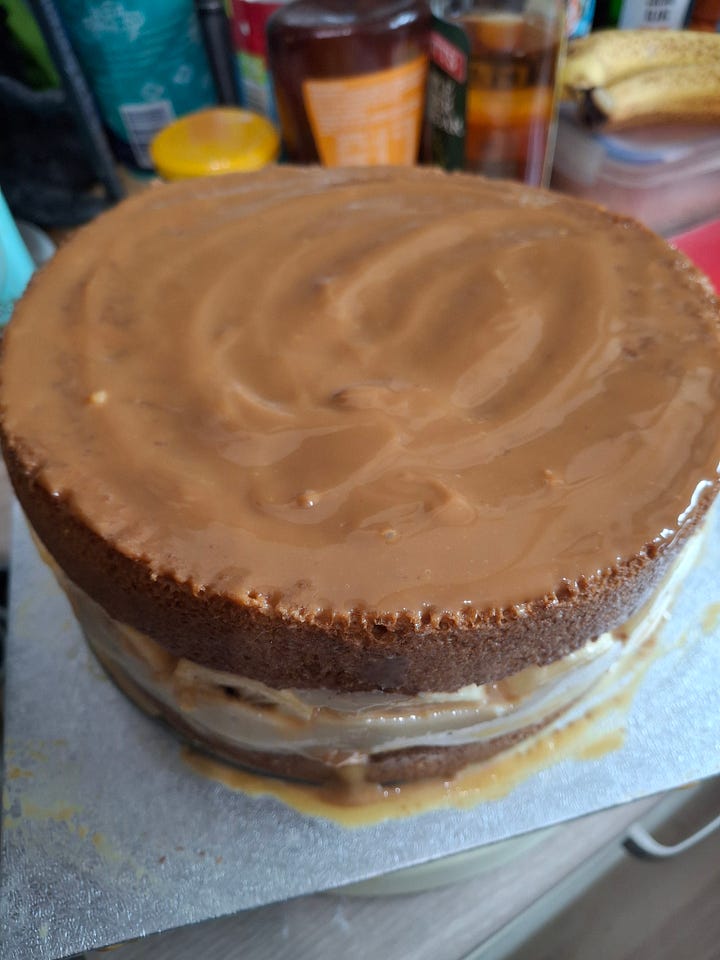 Spread a thick layer of caramel over the top of the soaked cake, or use strawberry jam (5 tbsp) if making the strawberry version.