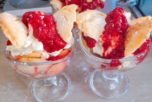 Everything is now ready to serve. Cut your shortcakes in half and pile with fruit and cream, pour over your compote, then pour yourself a glass of bubbly and cheer on Fani Willis as she joins Jack Smith in making Trump’s life a living nightmare.