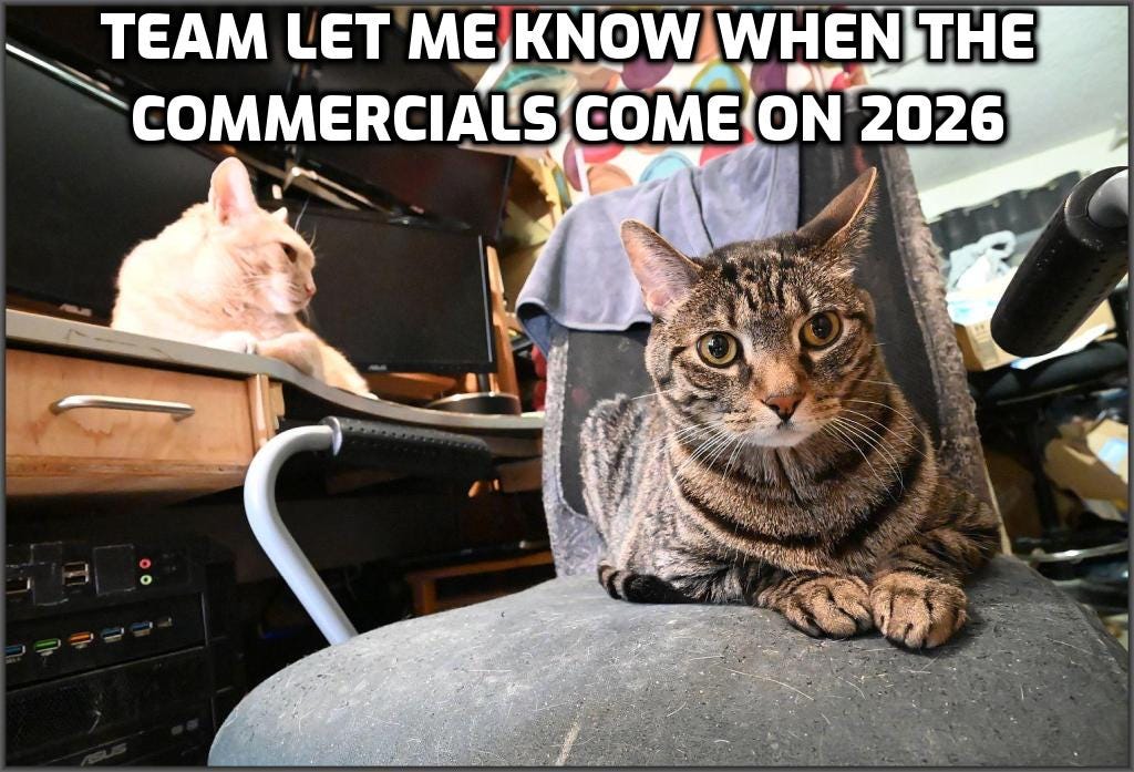 TEAM LET ME KNOW WHEN THE COMMERCIALS COME ON 2026!!!