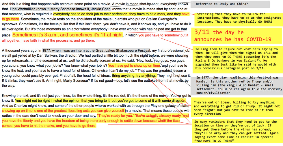"I do believe that when these mass arrests happen that we will be in martial law for our own safety," Crokin said . "I believe that the coronavirus, which the president of the United States and many doctors have said is no more serious than the flu, is the cover to put the country into lockdown—just like Italy is in lockdown—to possibly declare martial law, get people off the streets, keep them in their homes, so they're safe so when the military and the National Guard sweeps in and conducts these mass arrests, it is done in a manner where people are kept safe."