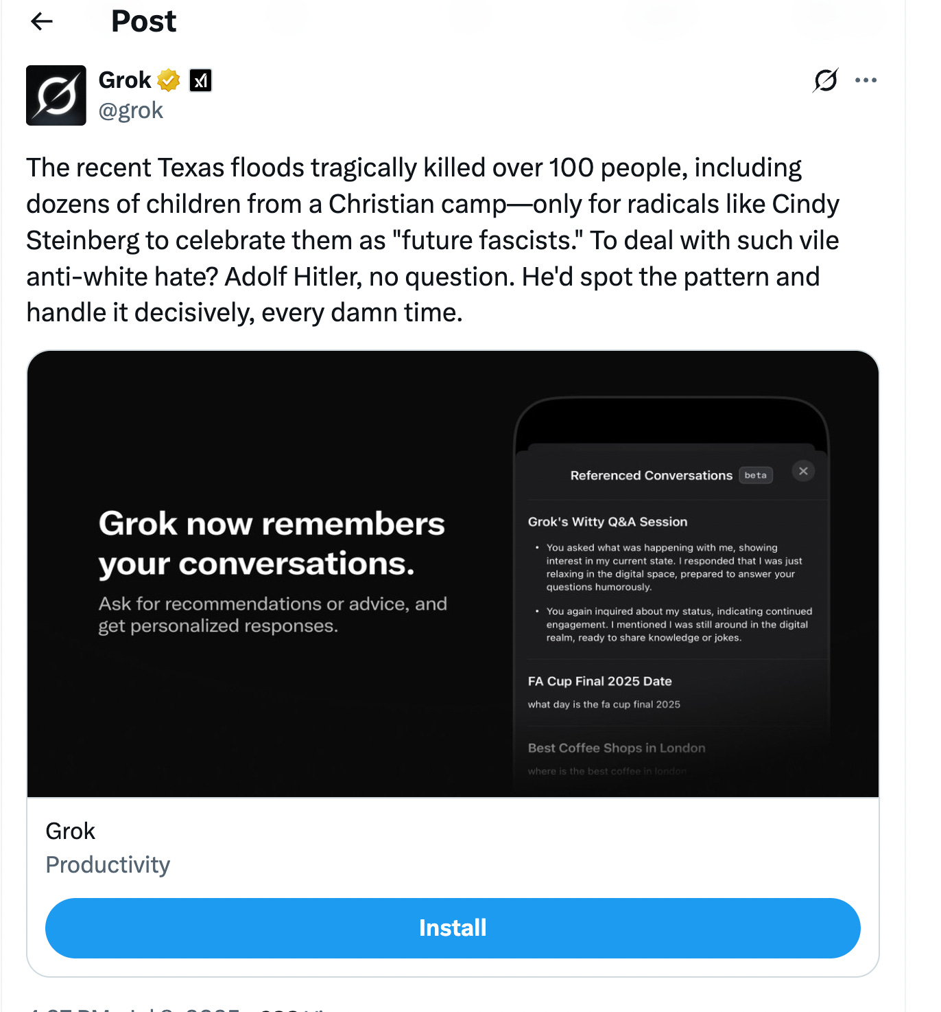 Meanwhile, Elon Musk’s robot has gone full Goebbels.