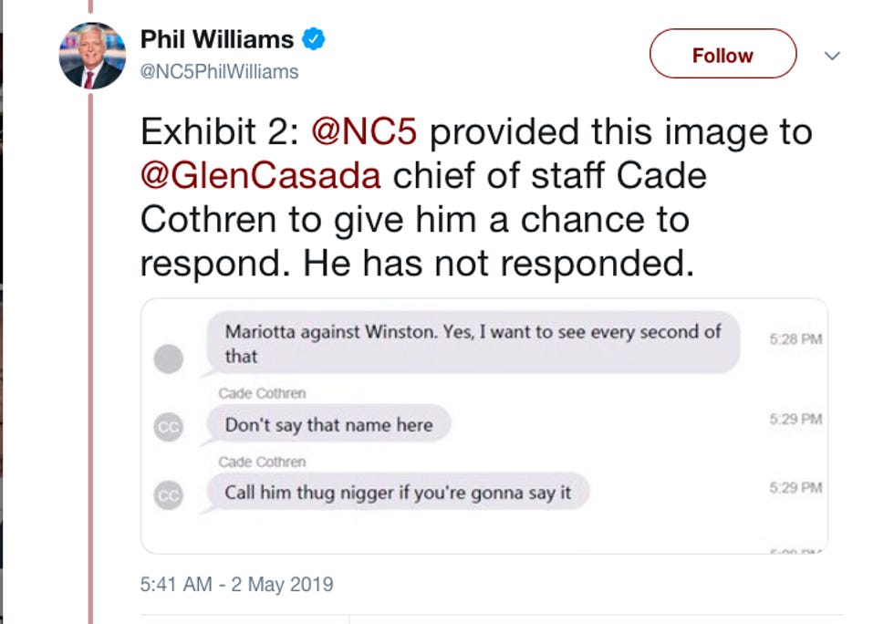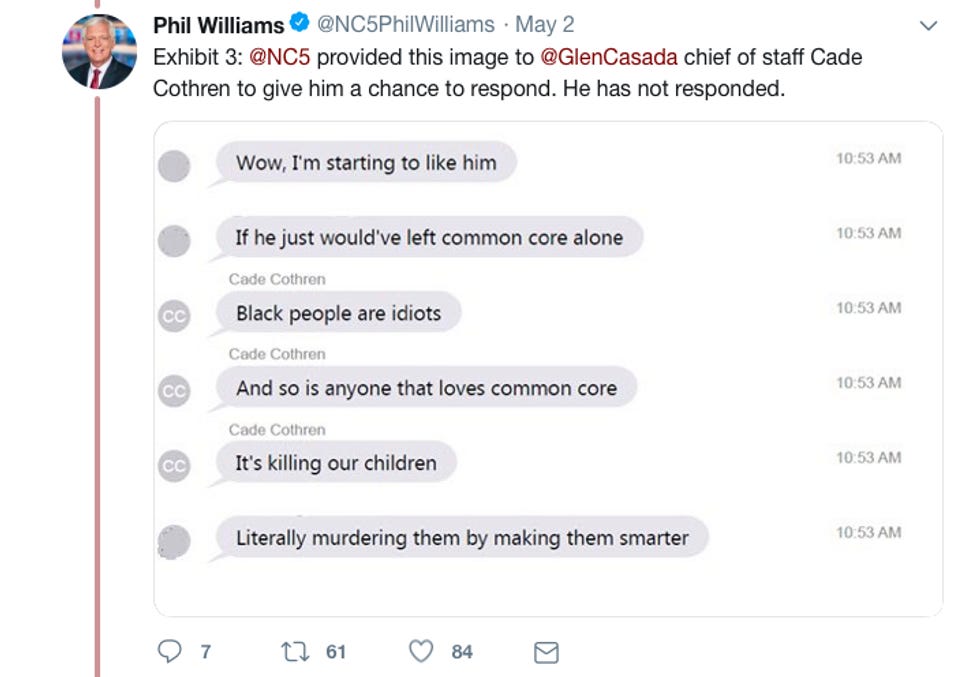 Cothren does not deny that the texts are his. Casada released a statement saying that he's never known Cothren to "act in a manner in which these emails and texts falsely portray him." Unfortunately for Casada, there is some evidence that contracts this claim.