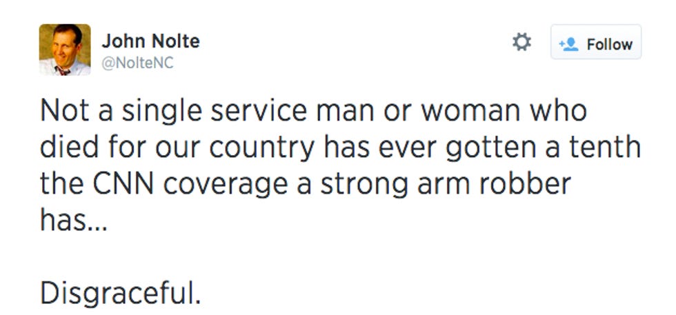 But we feel a journalistic obligation to let you know how John Nolte, a Breitbart columnist, feels about this entire "disgraceful" spectacle of mourning for yet another young black man killed by a cop, like that is something we are even supposed to care about, puh-lease.