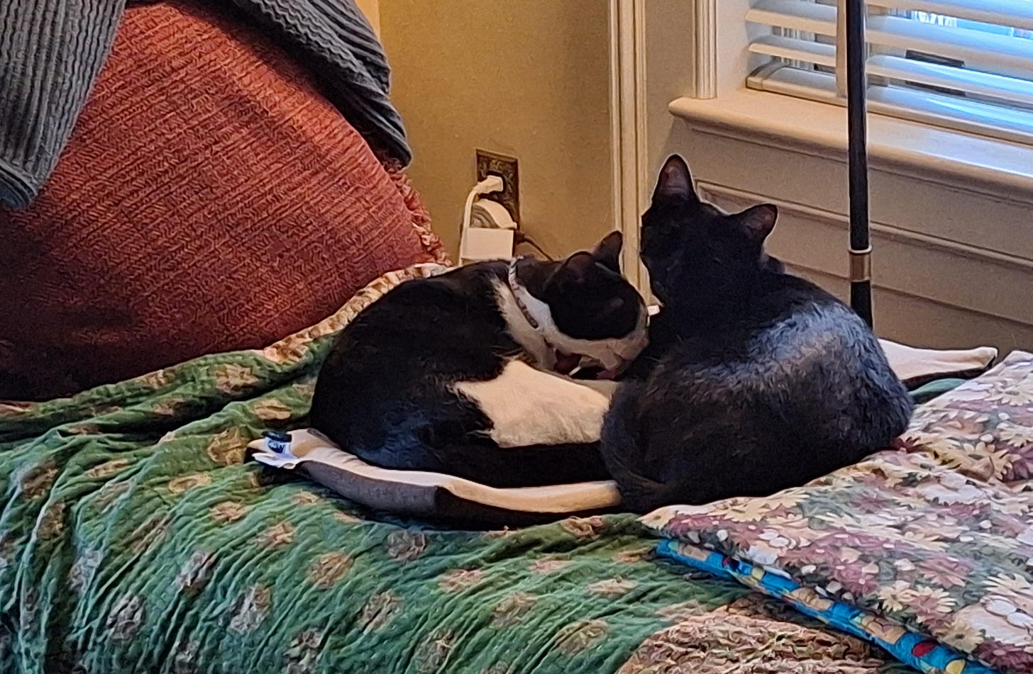 I'm respecting our cats. I'm not taking them to the No Kings Celebration in the downtown Cheboygan park. They couldn't give a shit if we have kings, in the first place. And, it's pretty cold today, and there's still a lot of snow. Mrs. Toomush and her broken ankle are coming, though. I think we'll just bring her wheelchair. She may only last an hour, but she's been working hard on signs all week...