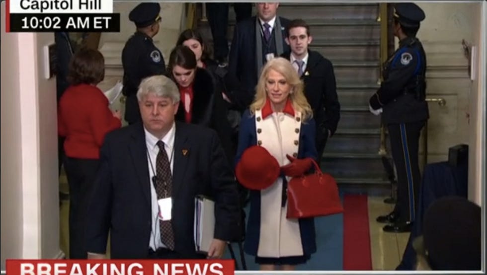 This also means that it is the anniversary of Kellyanne Conway wearing that ridiculous Gucci majorette outfit.