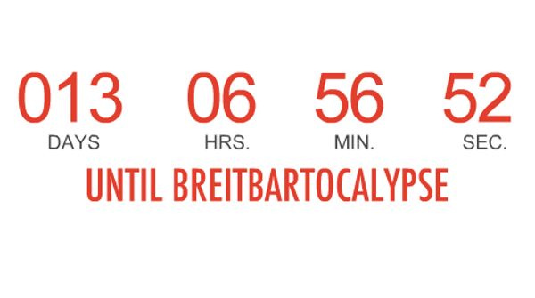 A popular liberal Twitter joke has been going around for... hmm... (21 - x = 13), (-x = -8), (x = 8!)... 8 days now, after crazy person Andrew Breitbart went on the 3 a.m. Fox News program and promised to "take down the institutional left" in "the next three weeks." And so here we now have a BREITBARTOCALYPSE (that is an extremely difficult word to type!) COUNTDOWN CLOCK. Why is it still counting down, though? Harold Ford's downfall was yesterday. [ Institutional Left Doomsday Clock ]