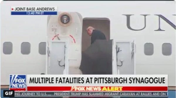 Oh, what a whimsical, wacky "silly rich guy!" thing it would have been, had he not just been standing outside of said airplane, talking about how all the Jewish people murdered today were kind of to blame for their own murder, on account of the fact that they didn't have any guns or armed guards at their synagogue. Instead, it just feels like a giant metaphor for not giving a flying shit about literally anything.