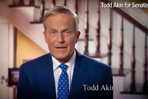 Akin was, of course, best known for losing a Senate race against Claire McCaskill, after making some extremely messed up comments about rape and human biology.
