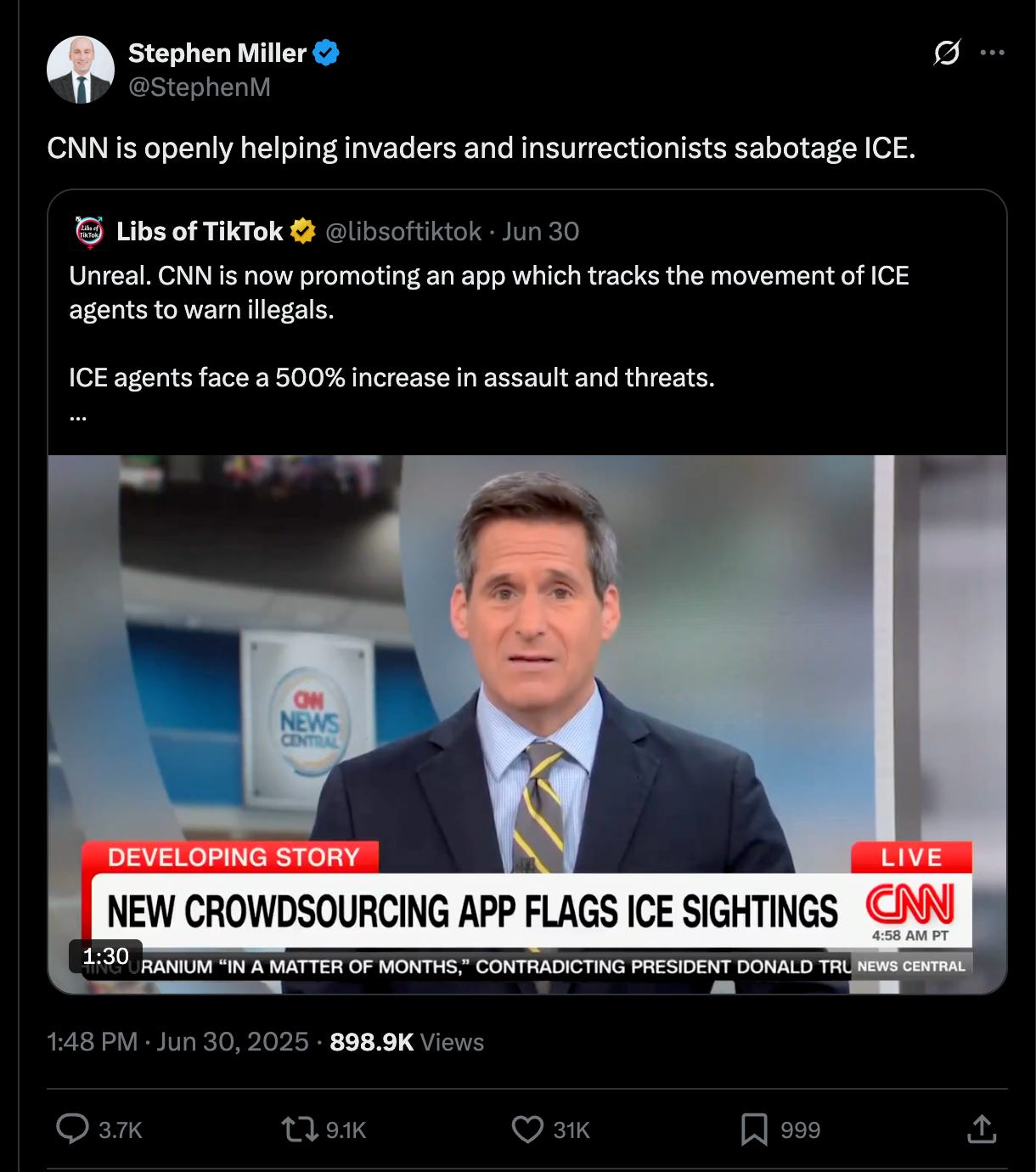 The thing Tom Homan is mad at is the app that protects people from encountering the Gestapo that’s going to kill them, leave their dog exposed in the Miami heat to escape and get hit by a car, and the TV network that reported on the app. The rest of it, he’s cool with.