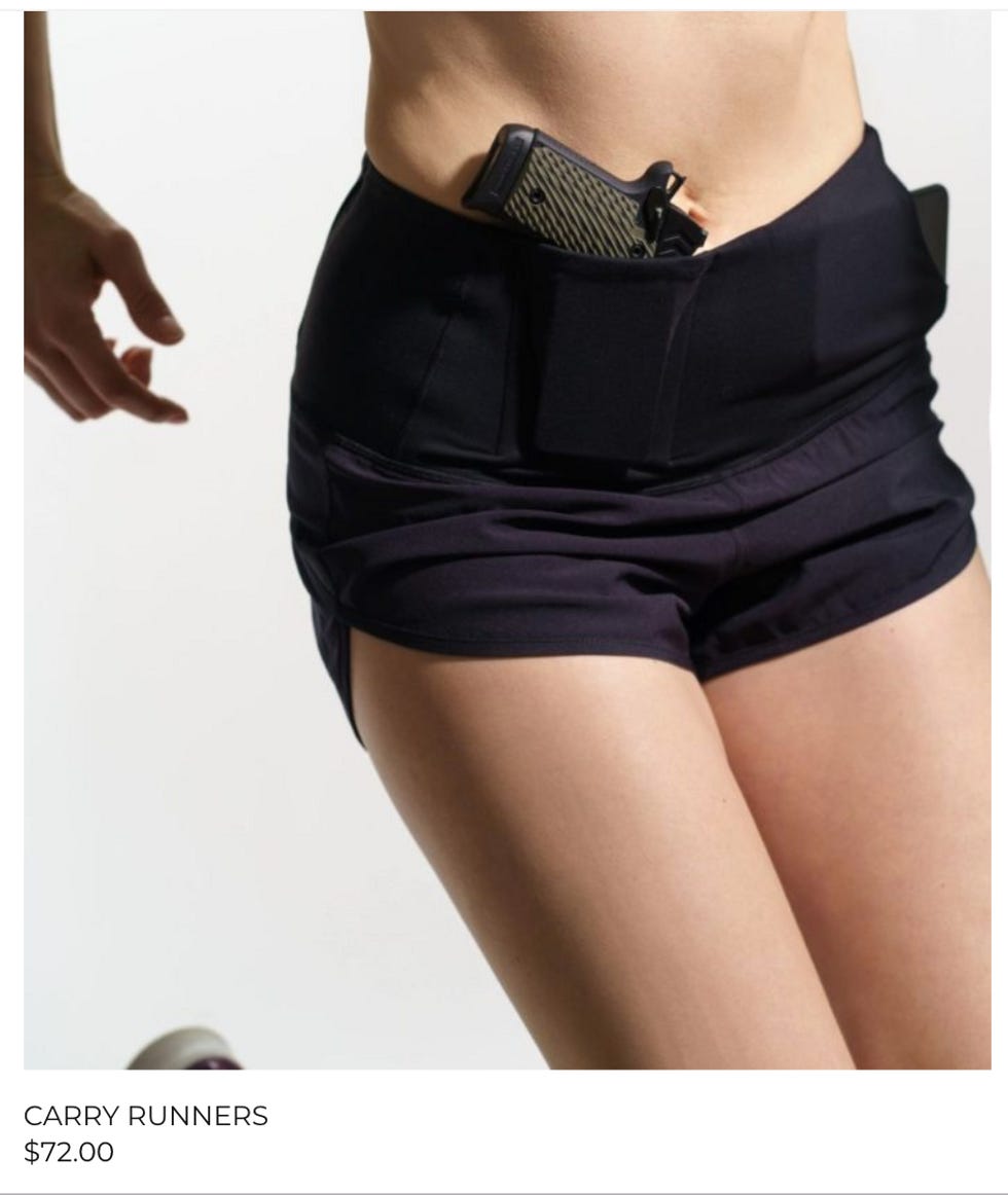As the line's founder, Amy Robbins, explains in the video, Alexo is a pro-Second Amendment athleisure brand featuring leggings and running shorts with extremely unsafe-looking gun holsters.