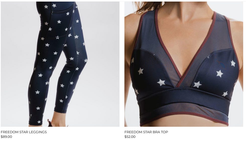 The high price tag of course, is for the sheer originality of leggings with liberty stars on them or pink camouflage sports bras , concepts no one before has ever been brave — or pro-America enough — to try.