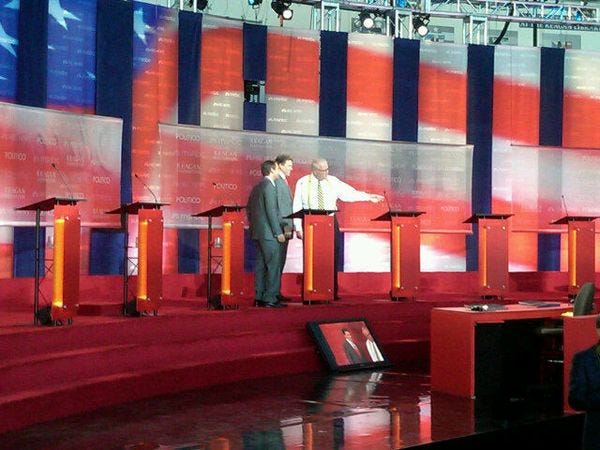 Doesn&#039;t matter, because it&#039;s not a debate. It&#039;s a test of how well he can memorize and spit out canned mini-speeches. Note how often his canned &quot;answers&quot; fail to answer the actual question asked. When blindsided, he&#039;ll blurt out something like &quot;What we <u>really</u> need to be talking about is something something something I&#039;ve memorized.&quot;