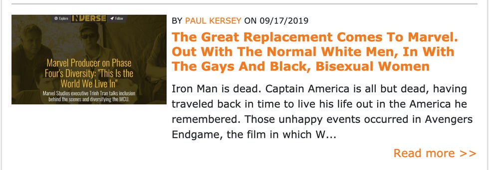There is really no reason why these groups should be classified as 501(c)3s, and the fact that they've gotten away with doing so for this long is pretty disturbing. The reason why non-profits are tax-exempt is because they provide a public service of some kind. I have to say, I'm not sure how writing about the ridiculous "Great Replacement" conspiracy theory as it applies to comic book movies is providing any kind of public service.